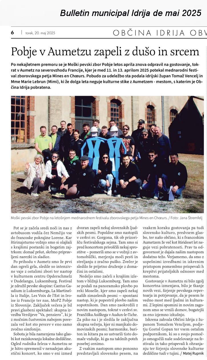 Articles parus dans le bulletin municipal d'Aumetz Septembre 2025 et dans celui d'Idrija en mai 2025