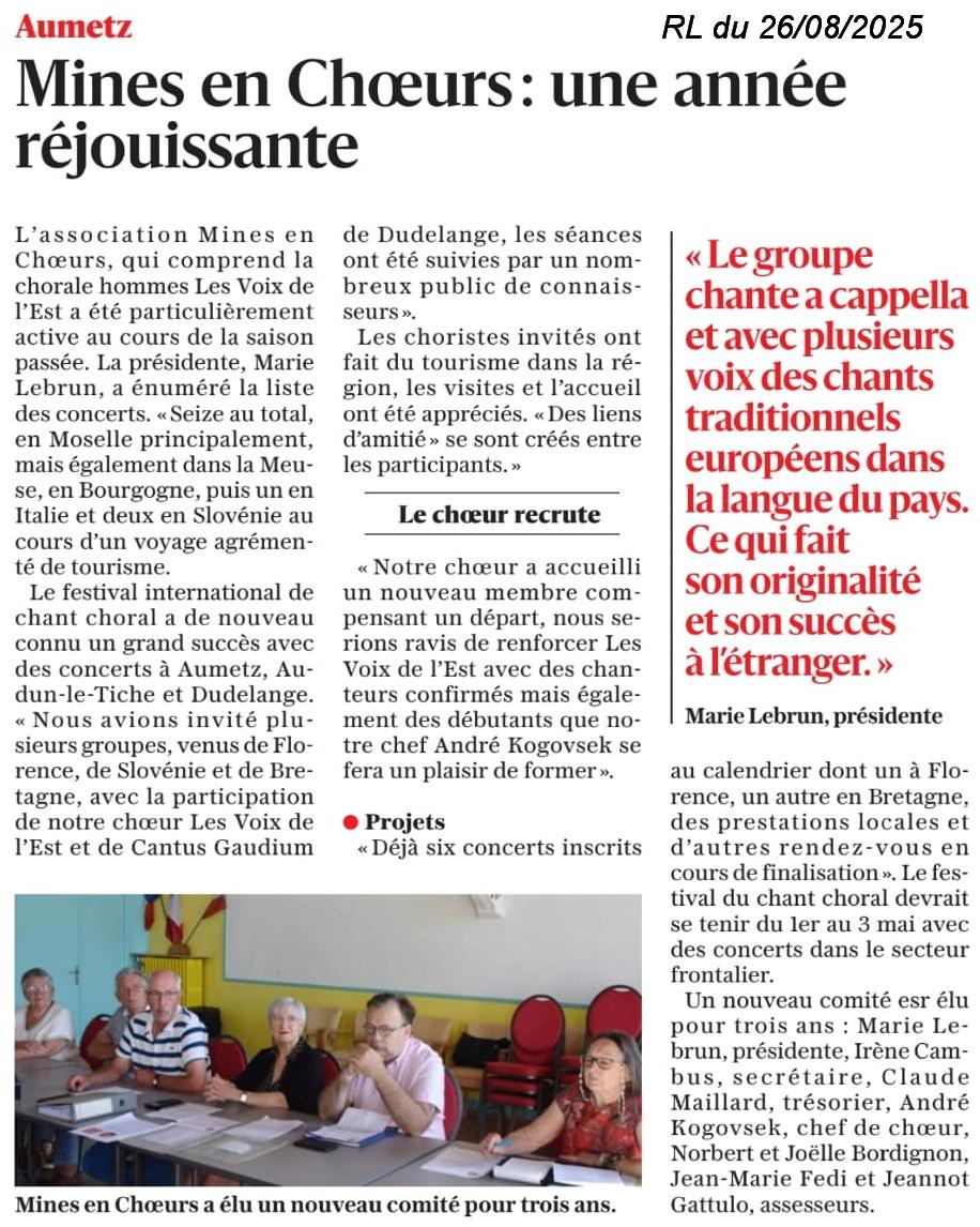 Article paru dans le bulletin municipal d'Aumetz Janvier 2025